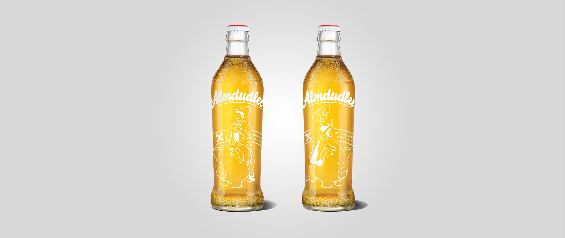Für den Almdudler-Trachtenpärchenball haben wir für die Raiffeisenlandesbank NÖ-Wien eine eigene Flasche designen dürfen.