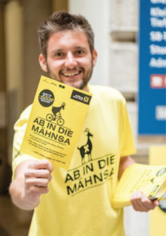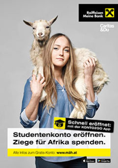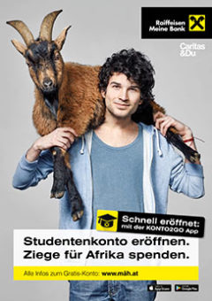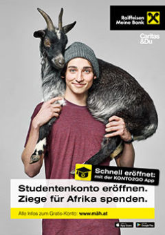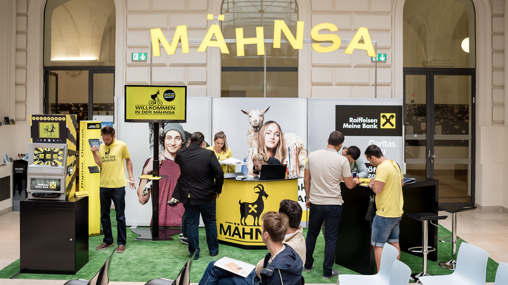 Warum liegt denn hier Gras rum? Weil sich in der Mähnsa alles ums Raiffeisen Studentenkonto dreht, zudem es eine Ziege gibt, die an eine notleidende Familie in Afrika gespendet wird. Die Mähnsa war im Wintersemester 16/17 der Lieblingsort aller Studis der Hauptuni, WU und Uni Wien Rossau.